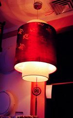 非常传统的造型,中国红的布面上印着俊逸的字体,下面还有中国结的灯穗增加喜庆气氛。