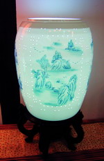 什么是玲珑瓷,就是薄如蝉翼的瓷,看透过孔隙放出的光芒,真是美轮美奂。
