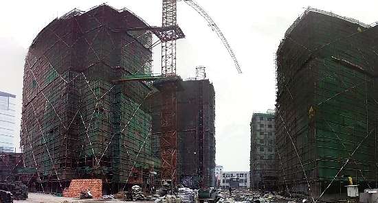 在温州市龙湾区江前路,“理想家苑”的施工现场,记者看到,几幢建筑物的外部已初步建设成型,数十名工人正在行进大楼的内部装修。现场施工方、中城集团的相关施工负责人告诉记者,项目虽然开始得早,但中途断断续续停工了一两年,直到2010下半年才陆续恢复开工,根据现今进度,预计到2012年7月可基本完工。