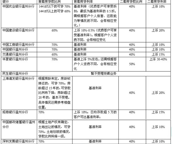【温州网·温州淘房网讯】日前,北京、上海、深圳、广州、天津、长沙、宁波等多个城市,已经有部分银行开始实施首套房贷最低8.5折优惠。那温州情况如何呢?记者以办理房屋贷款的市民身份,电话咨询了我市11家银行,除了民生银行相关人员表示暂不受理按揭业务外,其他银行均可办理按揭贷款。