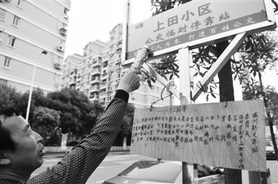 上田小区8幢的林老伯说,大家都想坐公交车,现在终于解决了。现在大家更关心的是,临时站牌何时能变成长久站点,正规的公交路线指示又何时能挂上?