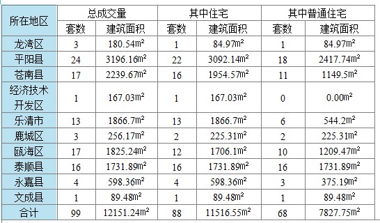 (数据来源:温州市房管局商品房网上销售管理系统)