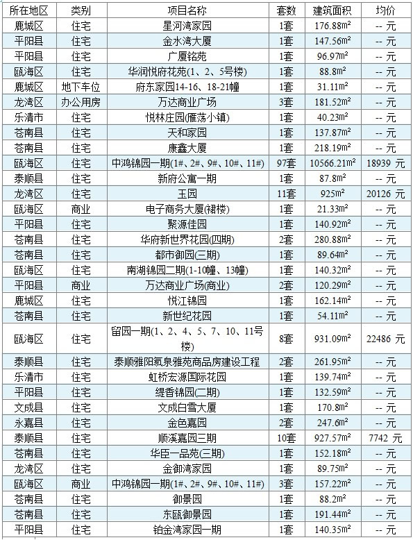 (数据来源:温州市房管局商品房网上销售管理系统)