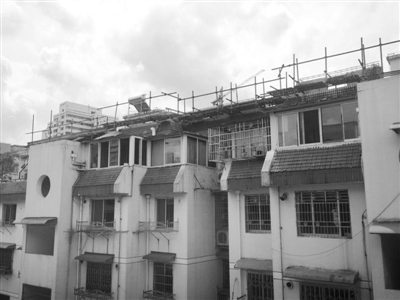 龙野花园6幢平改坡工程已经停工,但违章仍未拆除。光耀摄