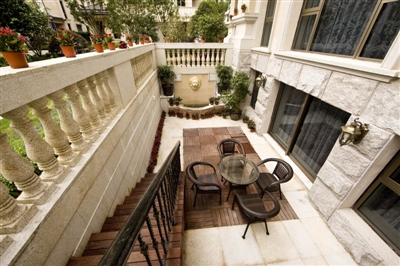 该项目位于龙湾永强大道与围垦路交会处,走进6米双层挑高客厅,长长的水晶宫灯如水银般泻下,仿佛进入了星级酒店,其雄浑的气势和欧式建筑装修风格让人耳目一新。室内主体以欧洲经典别墅为范本,设计花园层、社交层、家族层、生活层等多重空间。该项目规划设计了大尺度亲水花园、独立庭院,住户可以在自家庭院举办私人派对、家庭酒会等。除此之外,还有地下会所、空中露台和私家专属的电梯等。
