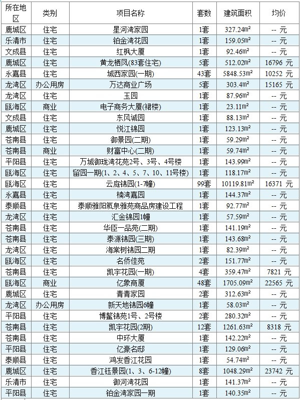 (数据来源:温州市房管局商品房网上销售管理系统)