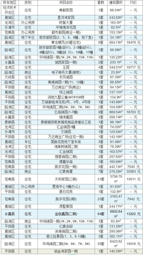 (数据来源:温州市房管局商品房网上销售管理系统)
