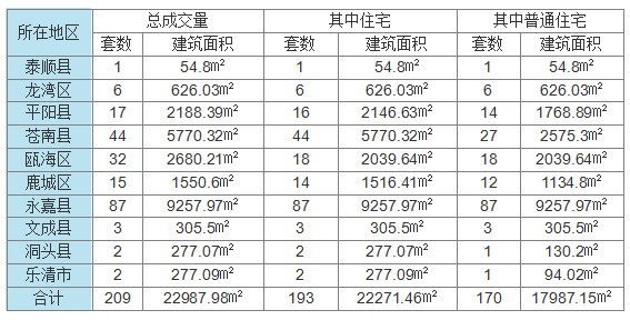 (数据来源:温州市房管局商品房网上销售管理系统)