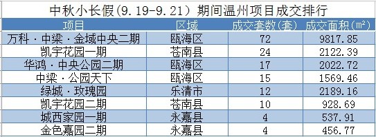 中秋小长假前后,温州商品房成交量