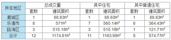 10月7日温州全市共计网签成交房产项目12套,成交建筑面积17271.84㎡。住宅为169套,成交面积为16023.19㎡。其中普通住宅成交150套,成交面积为12536.64㎡。