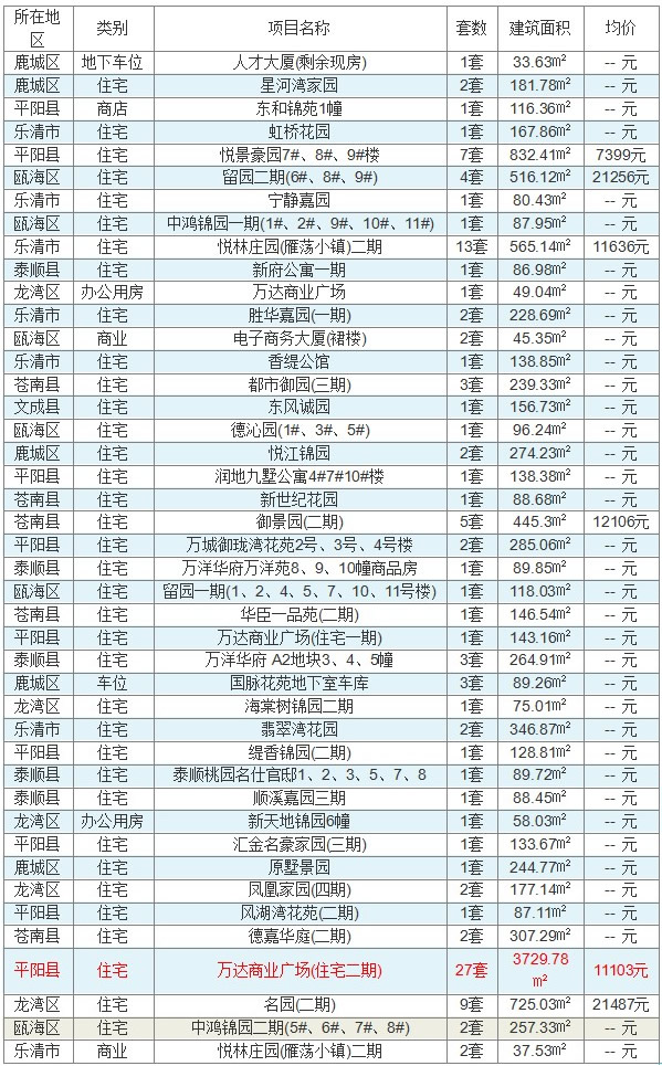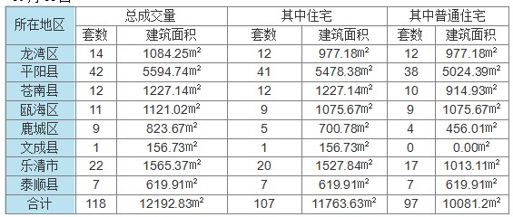 10月11日温州全市共计网签成交房产项目118套,成交建筑面积12192.83㎡。住宅为107套,成交面积为11763.63㎡。其中普通住宅成交97套,成交面积为10081.2㎡。