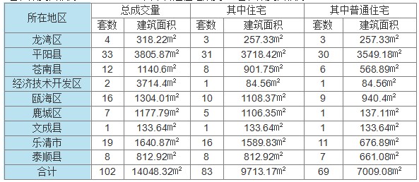 10月15日温州全市共计网签成交房产项目102套,成交建筑面积14048.32㎡。住宅为83套,成交面积为9713.17㎡。其中普通住宅成交69套,成交面积为7009.08㎡。