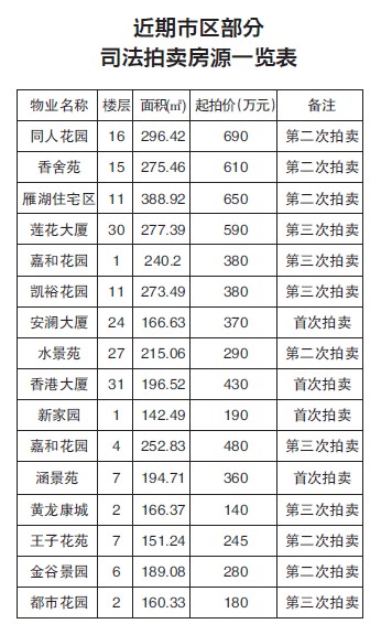 今年以来,由于法院、银行加快了对不良资产的处置工作,一大批抵押房进入了司法拍卖市场。这些房源入市后,其价格往往比同类型房源要便宜15%-20%。市民通过拍卖有可能淘到更便宜的房产,还有个最大的好处就是不受“限购令”的约束。拍卖房的评估是以市场价为基准,但所取的是相对保守的市场价格区间内的下限,而且司法拍卖还存在司法处置价,即在评估价的基础上再低15%-20%作为拍卖底价。如果竞拍所吸引来的客户不多或者拍卖现场参与竞价的不多,那么房子的成交价就会低于市场价。不仅如此,一次、二次流拍后,起拍价都还有10%至15%的降价空间。很多有经验的竞拍者在第一次拍卖会上持观望态度,到第二次、第三次拍卖才会出手。日前,鹿城广场锦玉园一套421平方米的房子,就是通过二次拍卖成交,其成交价格也比同类型价格要便宜。鹿城区人民法院网淘宝拍卖会上近期挂出来拍卖的房源中,有很大部分属于第二次或三次拍卖(见右表)。