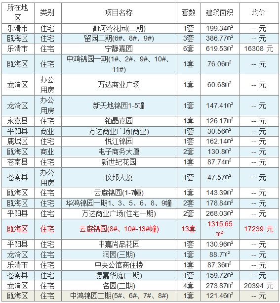 (数据来源:温州市房管局商品房网上销售管理系统)