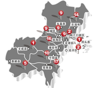 翻开《温州市小微企业创业园布局规划示意图》,代表小微园的圆点在温州城市板块上星罗棋布。论数量,苍南、瑞安、乐清占得前三位,最多的有17个。论“块头”,位于瓯海仙岩街道星光村的瓯海瓯商回归创业园面积最大,共1160亩。