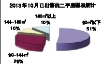 据平安易居、天浩置业、万豪房产、21世纪不动产等中介公司相关负责人透露,他们最近也成交了不少面积在120平方米以上的房源,方正大厦、嘉鸿花园、黄龙康城、球山花园、物华大厦、水心大厦等小区的大中户型房源成交较多。另据天浩置业对10月份已出售的二手房数据统计显示,面积在90平方米以上的房源占了49%,几乎占了整个月成交量的一半。其中,面积在144平方米以上的房源占了20%(见左图)。这些房源主要分布在市中和江滨板块,这也是今年以来大户型房源成交量占比较高的月份。