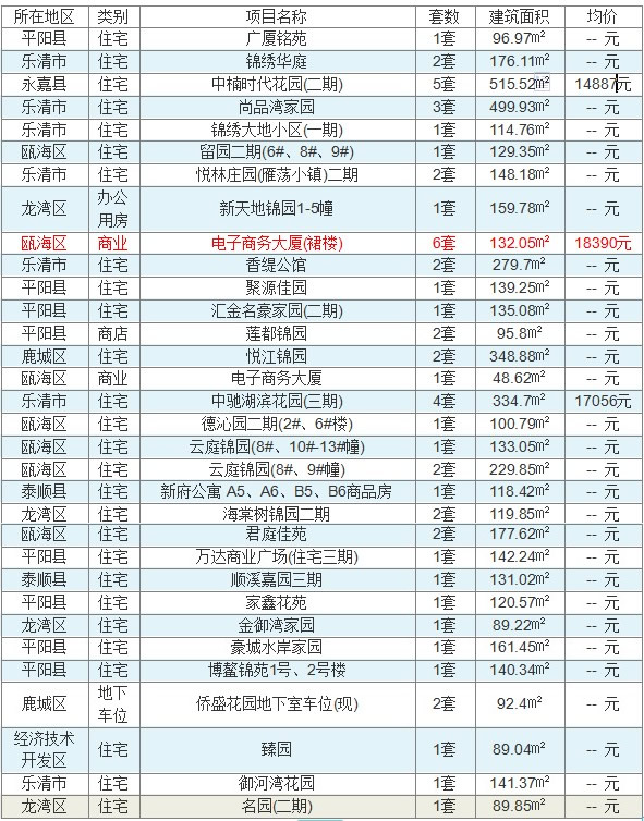 11月14日温州楼市成交55套 电子商务大厦18390元