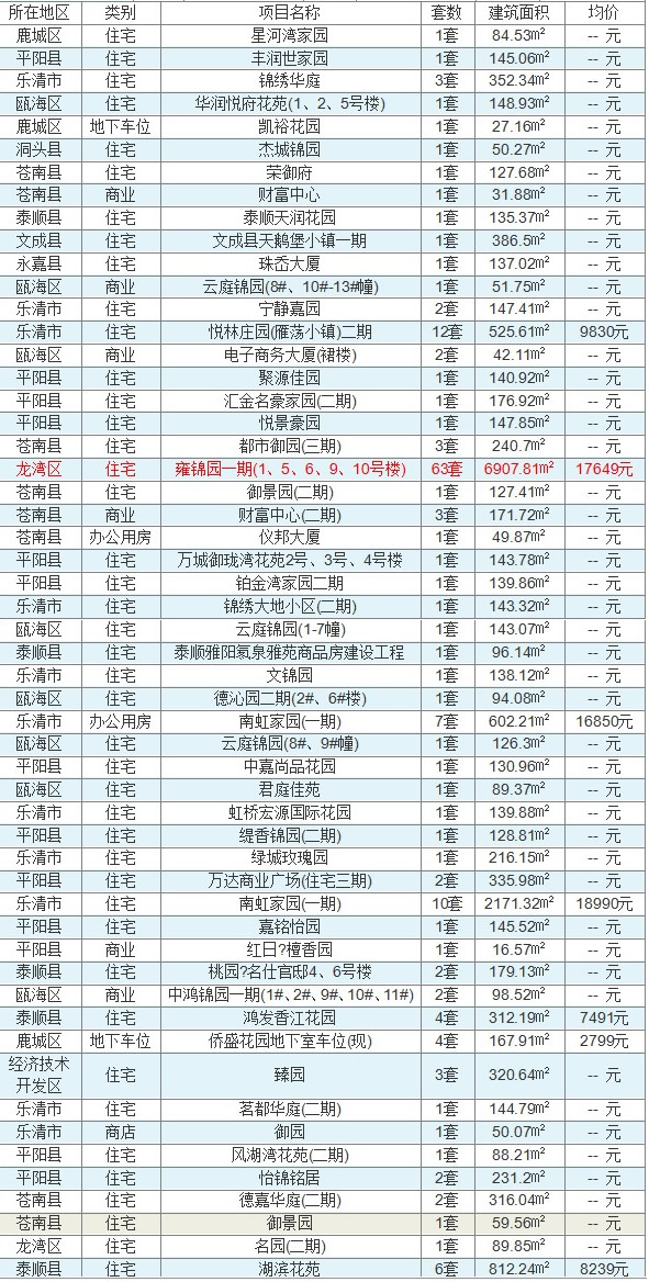 (数据来源:温州市房管局商品房网上销售管理系统)