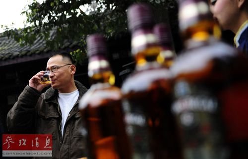 资料图片:2011年3月19日,在成都市文殊坊成都会馆,一位市民在品尝洋酒。新华社记者江宏景摄
