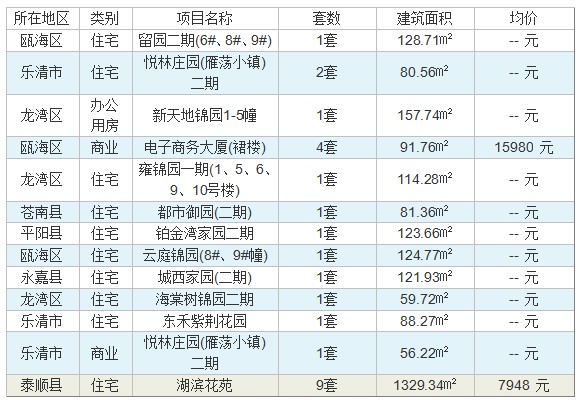 (数据来源:温州市房管局商品房网上销售管理系统)