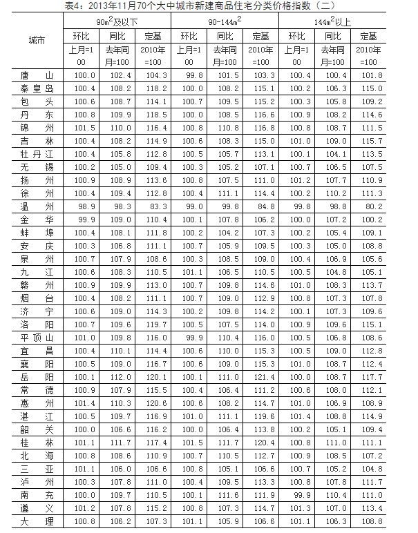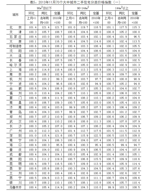 3、调查方法。70个大中城市的新建住宅销售价格、面积、金额等资料直接采用当地房地产管理部门的网签数据。二手住宅销售价格调查为非全面调查,采用重点调查和典型调查相结合的方法,按照房地产经纪机构上报、房地产管理部门提供与调查员实地采价相结合的方式收集基础数据。