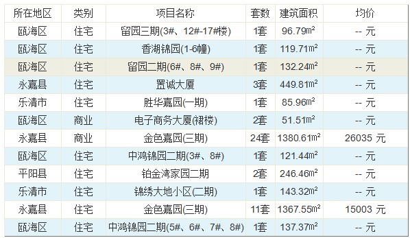 (数据来源:温州市房管局商品房网上销售管理系统)
