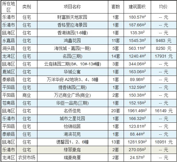 (数据来源:温州市房管局商品房网上销售管理系统)
