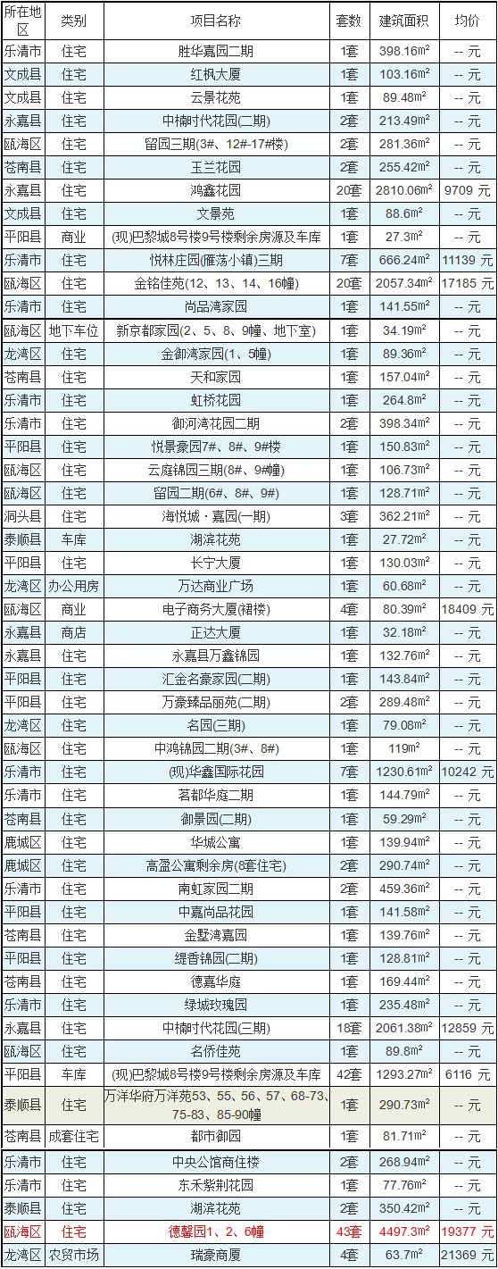 (数据来源:温州市房管局商品房网上销售管理系统)