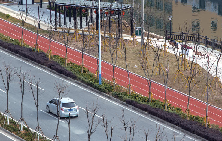 温州经济技术开发区滨海园区里,一条人行道被改造成红色的塑胶跑道,紧邻着6个滨水公园,成了开发区里一道靓丽的“风景线”,也让附近居民多了一个健身、休憩的好去处。