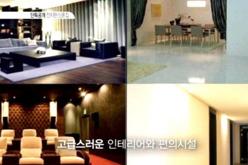 婚前进行装修的该豪宅内部同样高级豪华。客厅地板采用天然大理石,卧室则以富有色彩的原木地板增添了高贵气氛。在客厅采用的吊灯是奥地利某名品品牌,价额高达1500韩元。还有匹敌超豪华酒店的浴室桑拿浴和浴缸、水晶水龙头等以及厨房采用的德国、美国产等名品家电,增添了高贵优雅气氛。而且豪宅外安装摄像头、触电保安器等尖端设备,为保护艺人的私生活齐备了各种保安设施。