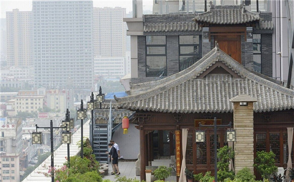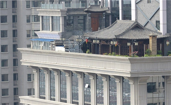 山西省太原市,位于平阳路101号一酒店楼顶搭起三座仿古建筑并在周围布置假山花草等用于装饰,不时还有身穿制服的工作人员出入,这一独特景观被附近居民戏称“空中楼阁”。