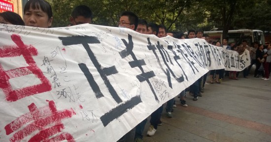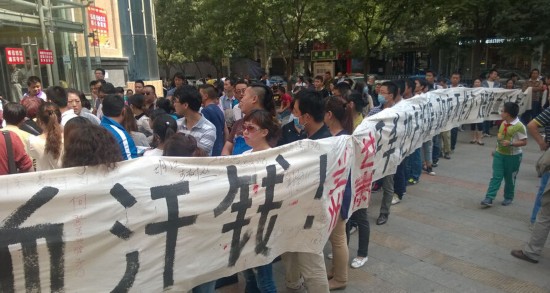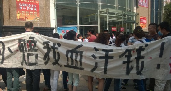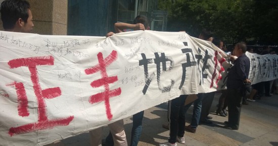 2014年9月9日,甘肃兰州,数百名市民拉着白色横幅聚集在张掖路省政府西侧的步行街上维权,白底黑字的横幅上写有“正丰地产诈骗、陪我血汗钱!”等字样。并高声呼喊“政府不作为、我们要见市长!”并引来大批路人的围观。据现场参与维权的市民介绍,他们被骗的人数在600多人,被骗单个数额最高为108万元。