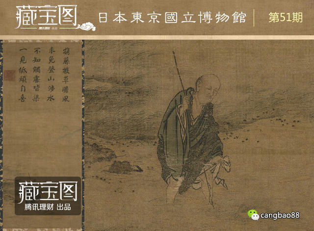 【南宋马远《洞山渡水图》】马远,中国南宋著名画家。这幅画描绘的是曹洞宗祖师洞山良价在云游途中,涉水之时见到自己水中之影而恍然大悟的一刹那,是为数不多的马远的真迹之一。原藏于圆明园,1860年“火烧圆明园”后被掠夺并流失海外。左图为整幅作品,右图为局部。
