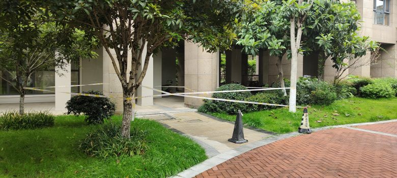 部分楼栋前拉起警戒线